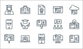 ikony linii nauki online. zestaw liniowy. wysokiej jakości zestaw linii wektorowych, takich jak książka, biblioteka chmury, uczenie się online, cyfrowa książka, stypendium, audiobook, ebook, ebook