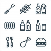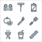 ikony linii urządzeń krajobrazowych. zestaw liniowy. wysokiej jakości zestaw linii wektorowych, takich jak gruszka, chili, butelka sprayu