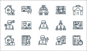 ikony linii koronawirusów. zestaw liniowy. wysokiej jakości zestaw linii wektorowych, takich jak rozprzestrzenianie się, chory, praca w domu, rozprzestrzenianie, maska twarzy, mycie rąk, globus, połączenie telefoniczne, wysokie temperatury