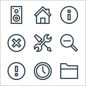 ikony linii multimedialnych. zestaw liniowy. zestaw linii wektorowych jakości, takich jak equalizer, wideo, kalendarz, konsola, zapisać, wyszukiwanie, mikrofon, gps