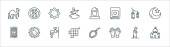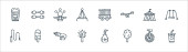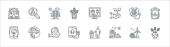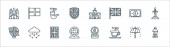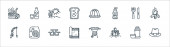Ikony sławy. zestaw liniowy. wysokiej jakości zestaw linii wektorowych, takich jak koktajl, wschodzące, disco ball, wentylatory, ochroniarz, muszka, sztabki złota, okulary przeciwsłoneczne