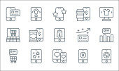 ikony linii e-commerce. zestaw liniowy. wysokiej jakości zestaw linii wektorowych, takich jak handel, zamówienie żywności, sklep internetowy, metoda płatności, bankowość internetowa, rating, sklep internetowy, mobilna analityka, płatność smartfona