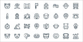 Zdjęcie "ikony linii dżungli. zestaw liniowy. wysokiej jakości zestaw linii wektorowych, takich jak chata, bez cięcia, kwiat, hipopotam, dziewczyna, aligator, pantera, kompas, góra" może być wykorzystywane do celów osobistych i komercyjnych zgodnie z warunkami zakupionej licencji Royalty-free. Obraz jest dostępny do pobrania w jakości wysokiej rozdzielczości do 5760x3840.