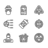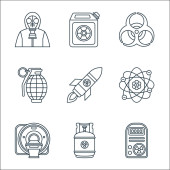 ikony linii energii jądrowej. zestaw liniowy. wysokiej jakości zestaw przewodów wektorowych, takich jak promieniowanie, promieniowanie, granat