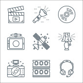 Zdjęcie "ikony linii urządzeń technologicznych. zestaw liniowy. wysokiej jakości zestaw linii wektorowych, takich jak chłodnica powietrza, odtwarzacz muzyczny, radio vintage, kamera wideo, przedłużacz, lampa sypialna, kamera cctv, kuchenka ciśnieniowa" może być wykorzystywane do celów osobistych i komercyjnych zgodnie z warunkami zakupionej licencji Royalty-free. Obraz jest dostępny do pobrania w jakości wysokiej rozdzielczości do 5760x3840.