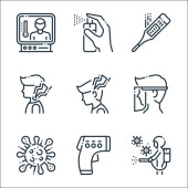 ikony linii przesyłu wirusa. zestaw liniowy. wysokiej jakości zestaw linii wektorowych, takich jak kaszel, chory, lekarz