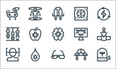 technologia przyszłych ikon linii. zestaw liniowy. wysokiej jakości zestaw linii wektorowych, takich jak drzwi, dostawa dronów, podróże w czasie, teleportacja, inkubator jaj, pies robot, sztuczna inteligencja, światło ekologiczne,