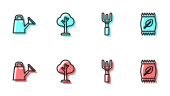ikony środowiska i linii ekologicznych. zestaw liniowy. zestaw linii wektorowych jakości, takich jak eko-etykieta, żywność ekologiczna, rolnik