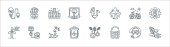 ikony środowiska i linii ekologicznych. zestaw liniowy. wysokiej jakości zestaw linii wektorowych, takich jak klucz, ekologia, samochód elektryczny, roślina, dom, trofeum, kosz na śmieci, termometr