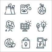 ikony środowiska i linii ekologicznych. zestaw liniowy. wysokiej jakości zestaw linii wektorowych, takich jak kwiat, ładowanie, bateria