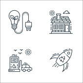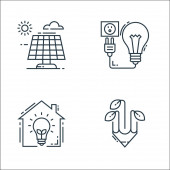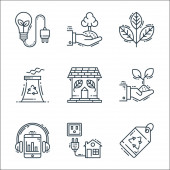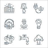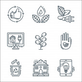 ikony środowiska i linii ekologicznych. zestaw liniowy. wysokiej jakości zestaw linii wektorowych, takich jak kontrola światła, zrównoważony rozwój, dom, kosz na śmieci, energia wiatru, energia wiatru, kosz na śmieci, zakład