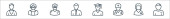 ikony zawodów. zestaw liniowy. zestaw linii wektorowych jakości, takich jak strażak, farmaceuta, student, listonosz, zakonnica, górnik