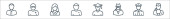 ikony zawodów. zestaw liniowy. zestaw linii wektorowych jakości, takich jak ksiądz, lekarz, strażak, naukowiec, ksiądz, nauczyciel, call agent