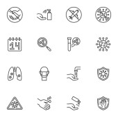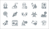 ikony linii koronawirusów. zestaw liniowy. wysokiej jakości zestaw linii wektorowych, takich jak nagły wypadek, koronawirus, kwarantanna, samolot, maska do twarzy, środek antyseptyczny, covid, mycie rąk