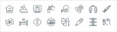 ikony linii koronawirusów. zestaw liniowy. wysokiej jakości zestaw linii wektorowych, takich jak lekarz, respirator, maska medyczna, mycie rąk, tabletki, mycie rąk, maska do twarzy, kwarantanna