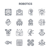 ikony linii robotyki. zestaw liniowy. wysokiej jakości zestaw linii wektorowych, takich jak sztuczna inteligencja, robot, sztuczna inteligencja, robot, robot, proces, sztuczna inteligencja, ramię, wizja