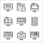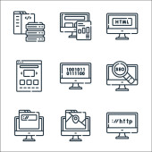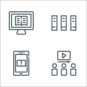 ikony linii telekomunikacyjnych. zestaw liniowy. wysokiej jakości zestaw linii wektorowych, takich jak intranet, skrzynka odbiorcza, wideo, online, płatność online, chat box, zadanie, słuchawki