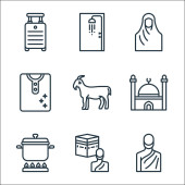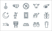 ikony linii Ramadan. zestaw liniowy. wysokiej jakości zestaw linii wektorowych, takich jak brak muzyki, jagnięcina, palma, wskazanie, bez jedzenia, okno, półksiężyc, czajnik, flaga