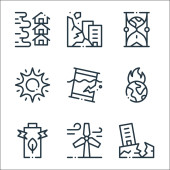 ikony linii ryzyka biznesowego. zestaw liniowy. zestaw linii wektorowych jakości, takich jak trzęsienie ziemi, ekonomiczne, decyzja, ryzyko, partnerstwo, presja, powódź, utrata pieniędzy