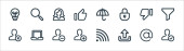 Zdjęcie "ikony linii interfejsu użytkownika. zestaw liniowy. wysokiej jakości zestaw linii wektorowych, takich jak telefon, dzwonek powiadomień, zbliżenie, marketing, zegarek, kamera, kobieta, trofeum" może być wykorzystywane do celów osobistych i komercyjnych zgodnie z warunkami zakupionej licencji Royalty-free. Obraz jest dostępny do pobrania w jakości wysokiej rozdzielczości do 5760x3840.
