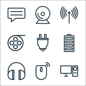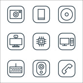 ikony linii interfejsu użytkownika. zestaw liniowy. wysokiej jakości zestaw linii wektorowych, takich jak telefon, słuchawki, kobieta, użytkownik bloku, laptop, trofeum, klucz, mobile