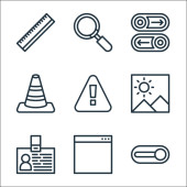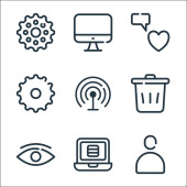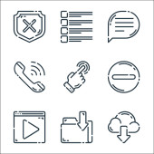 ikony linii interfejsu użytkownika. zestaw liniowy. zestaw linii wektorowych jakości, takich jak pobieranie, koszyk, teczka, połączenie telefoniczne, znacznik, wiadomość, zapisać, przycisk zasilania