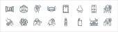 Zostań w domu na ikony linii kwarantanny. zestaw liniowy. wysokiej jakości zestaw linii wektorowych, takich jak kosmetyki, pobyt w domu, jigsaws, szachy, praca, spanie człowieka, seminarium