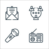 ikony linii komunikacyjnych. zestaw liniowy. wysokiej jakości zestaw linii wektorowych, takich jak komunikacja, wideo, mikrofon, megafon, domofon, radio, komunikacja, słuchawki