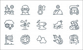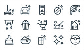 ikony linii dezynfekcji masowej. zestaw liniowy. wysokiej jakości zestaw linii wektorowych, takich jak most, buty, sprzątanie, dron, ziemia, prysznic, samochody, pociąg, łóżka