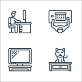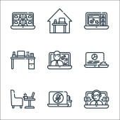 ikony linii domowej. zestaw liniowy. wysokiej jakości zestaw linii wektorowych, takich jak praca, praca, rozmowy wideo, kalendarz, praca w domu, wyciszenie, tablet, czat