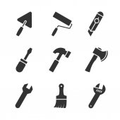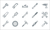 ikony dnia pracy. zestaw liniowy. wysokiej jakości zestaw linii wektorowych, takich jak młotek, szczotka, śrubokręt
