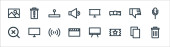ikony linii multimedialnych. zestaw liniowy. wysokiej jakości zestaw linii wektorowych, takich jak equalizer, monitor komputera, projektor wideo, dom, dźwięk, odtwarzanie, kalendarz, wideo