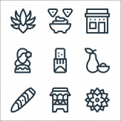 Zdjęcie "ikony linii gastronomicznej. zestaw liniowy. wysokiej jakości zestaw linii wektorowych, takich jak masło orzechowe, wiśnia, ryż, koktajl, chipsy ziemniaczane, żeberka, kukurydza, noga szynki" może być wykorzystywane do celów osobistych i komercyjnych zgodnie z warunkami zakupionej licencji Royalty-free. Obraz jest dostępny do pobrania w jakości wysokiej rozdzielczości do 5760x3840.