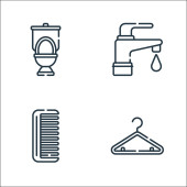 ikony linii łazienki. zestaw liniowy. wysokiej jakości zestaw linii wektorowych, takich jak wycieraczki, mydło w płynie, szczotka do WC