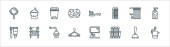 ikony linii łazienki. zestaw liniowy. wysokiej jakości zestaw linii wektorowych, takich jak krem, spray, brzytwa, ręcznik, kosz, rura, szafka, szafa