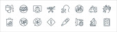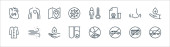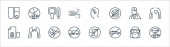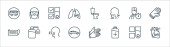 zatrzymać ikony linii wirusów. zestaw liniowy. wysokiej jakości zestaw linii wektorowych, takich jak okno, pranie, leki, maska medyczna, maska medyczna, oko, miotła, wentylator