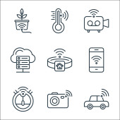Zdjęcie "Internet rzeczy ikony linii. zestaw liniowy. wysokiej jakości zestaw linii wektorowych, takich jak włączanie, sieć, inteligentne gospodarstwo" może być wykorzystywane do celów osobistych i komercyjnych zgodnie z warunkami zakupionej licencji Royalty-free. Obraz jest dostępny do pobrania w jakości wysokiej rozdzielczości do 5760x3840.