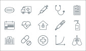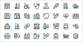 ikony linii narzędzi medycznych. zestaw liniowy. wysokiej jakości zestaw linii wektorowych, takich jak szpital, fonendoskop, apteka, chirurgia, antybiotyk, książka medyczna, ziołowe, nosze, medycyna upuszczania