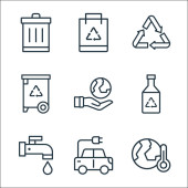 ikony Dnia Matki Ziemi. zestaw liniowy. wysokiej jakości zestaw linii wektorowych, takich jak samochód elektryczny, kalendarz, góry