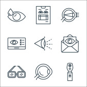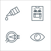 ikony linii okulistycznej. zestaw liniowy. wysokiej jakości zestaw linii wektorowych, takich jak recepta, ubezpieczenie oczu, kroplomierz, spray, tabletki na oczy, kroplomierz, okulary testowe, diagnoza