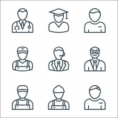Zdjęcie "ikony zawodów. zestaw liniowy. zestaw linii wektorowych jakości, takich jak absolwent, pielęgniarka, prawnik, farmaceuta, zakonnica, pracownik, policjant" może być wykorzystywane do celów osobistych i komercyjnych zgodnie z warunkami zakupionej licencji Royalty-free. Obraz jest dostępny do pobrania w jakości wysokiej rozdzielczości do 5760x3840.