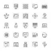 ikony linii wideo. zestaw liniowy. wysokiej jakości zestaw linii wektorowych, takich jak edycja wideo, wirtualna rzeczywistość, odtwarzacz wideo, karta pamięci, okulary d, kamerka internetowa, przycisk odtwarzania, statyw, projektor
