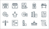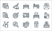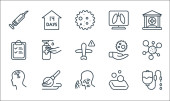 ikony linii covid. zestaw liniowy. wysokiej jakości zestaw linii wektorowych, takich jak lista kontrolna, wiadomości, karetka, ból głowy, pandemia, strzykawka, bakterie, płuca, wyszukiwanie
