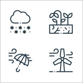 ikony linii natury. zestaw liniowy. wysokiej jakości zestaw linii wektorowych, takich jak zachód słońca, drzewo, bambus, góry, góra lodowa, śnieg, palma, zima