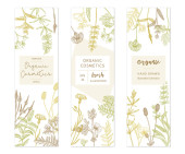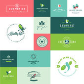 Zestaw znaków dla kosmetyków organicznych i naturalnych oraz produktów kosmetycznych. Ilustracje wektorowe do promocji produktów, projektowania opakowań, projektowania stron internetowych, prezentacji biznesowej, materiałów marketingowych.