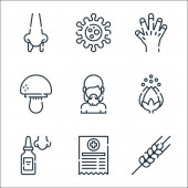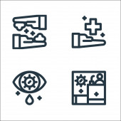 ikony linii koronawirusów. zestaw liniowy. wysokiej jakości zestaw linii wektorowych, takich jak zagrożenie biologiczne, niedotykanie, wirus