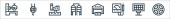 ikony linii produkcyjnych. zestaw liniowy. wysokiej jakości zestaw linii wektorowych, takich jak przenośnik taśmowy, wiertarka, tokarka, panel sterowania, zacisk, węgiel, wiertarka