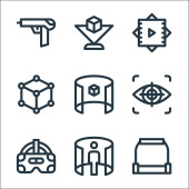 Zdjęcie "ikony wirtualnej rzeczywistości. zestaw liniowy. wysokiej jakości zestaw linii wektorowych, takich jak hologram, selektor, ar, kamera, czujniki, podnieść, widok" może być wykorzystywane do celów osobistych i komercyjnych zgodnie z warunkami zakupionej licencji Royalty-free. Obraz jest dostępny do pobrania w jakości wysokiej rozdzielczości do 5760x3840.