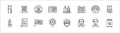ikony z lipca. zestaw liniowy. wysokiej jakości zestaw linii wektorowych, takich jak usa, naklejki, tamburyn, kiełbasa, piwo, szampan, księżyc, baseball