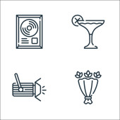ikony z lipca. zestaw liniowy. wysokiej jakości zestaw linii wektorowych, takich jak księżyc, babeczka, bęben